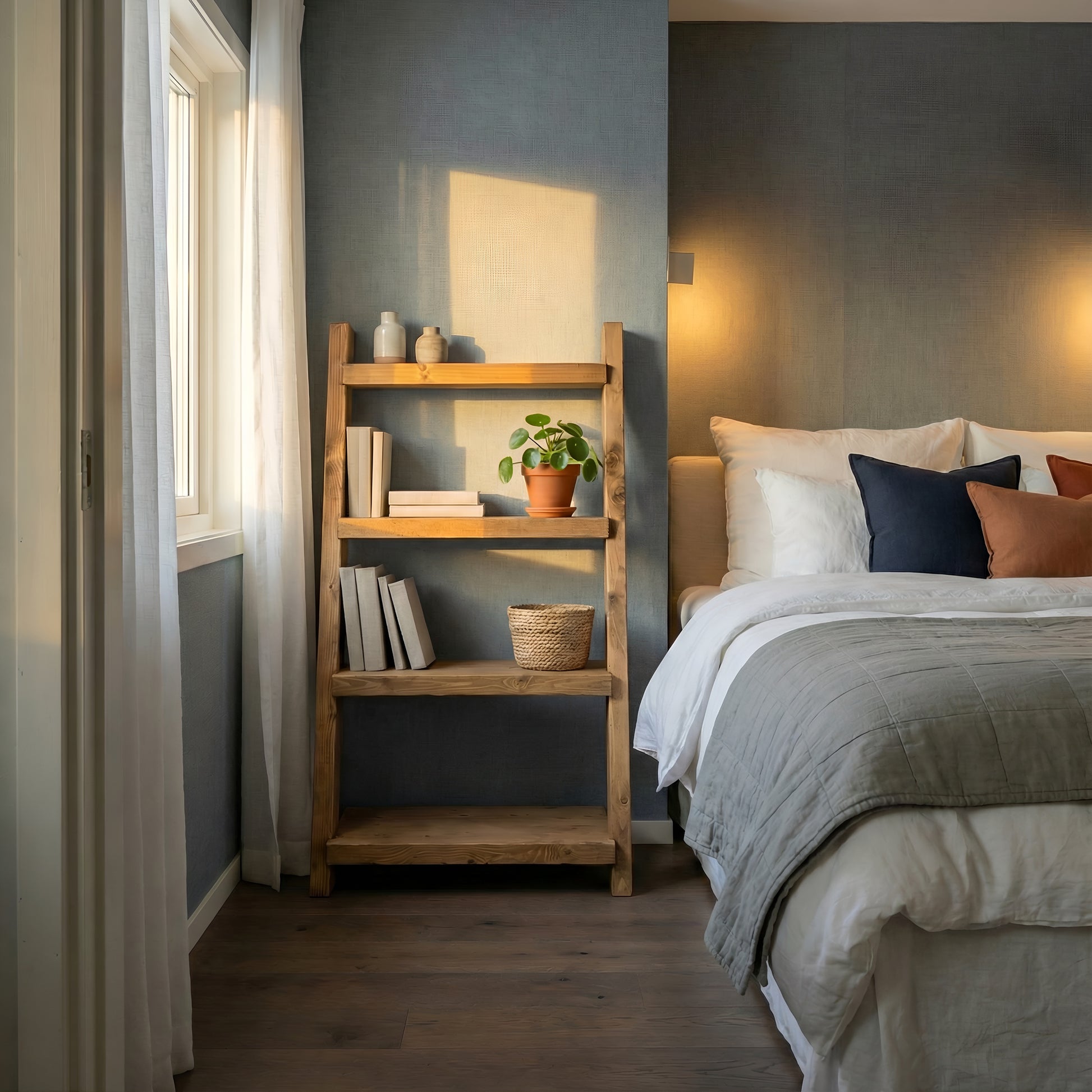 Bring warmth, texture, and timeless character to your space with our handcrafted solid wood ladder shelf — a perfect balance of modern farmhouse charm and bohemian simplicity.