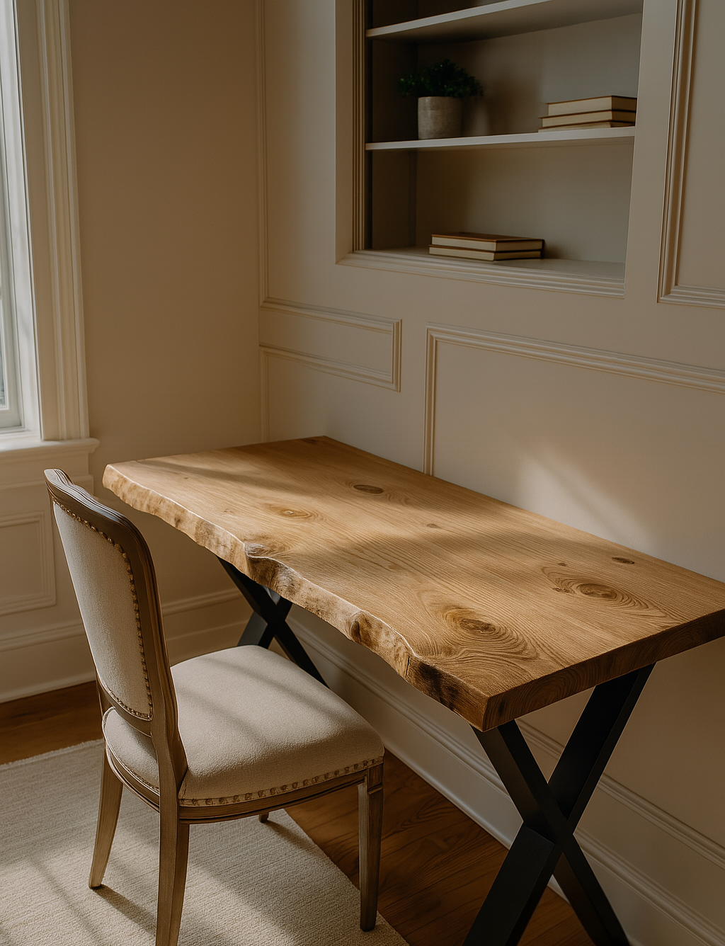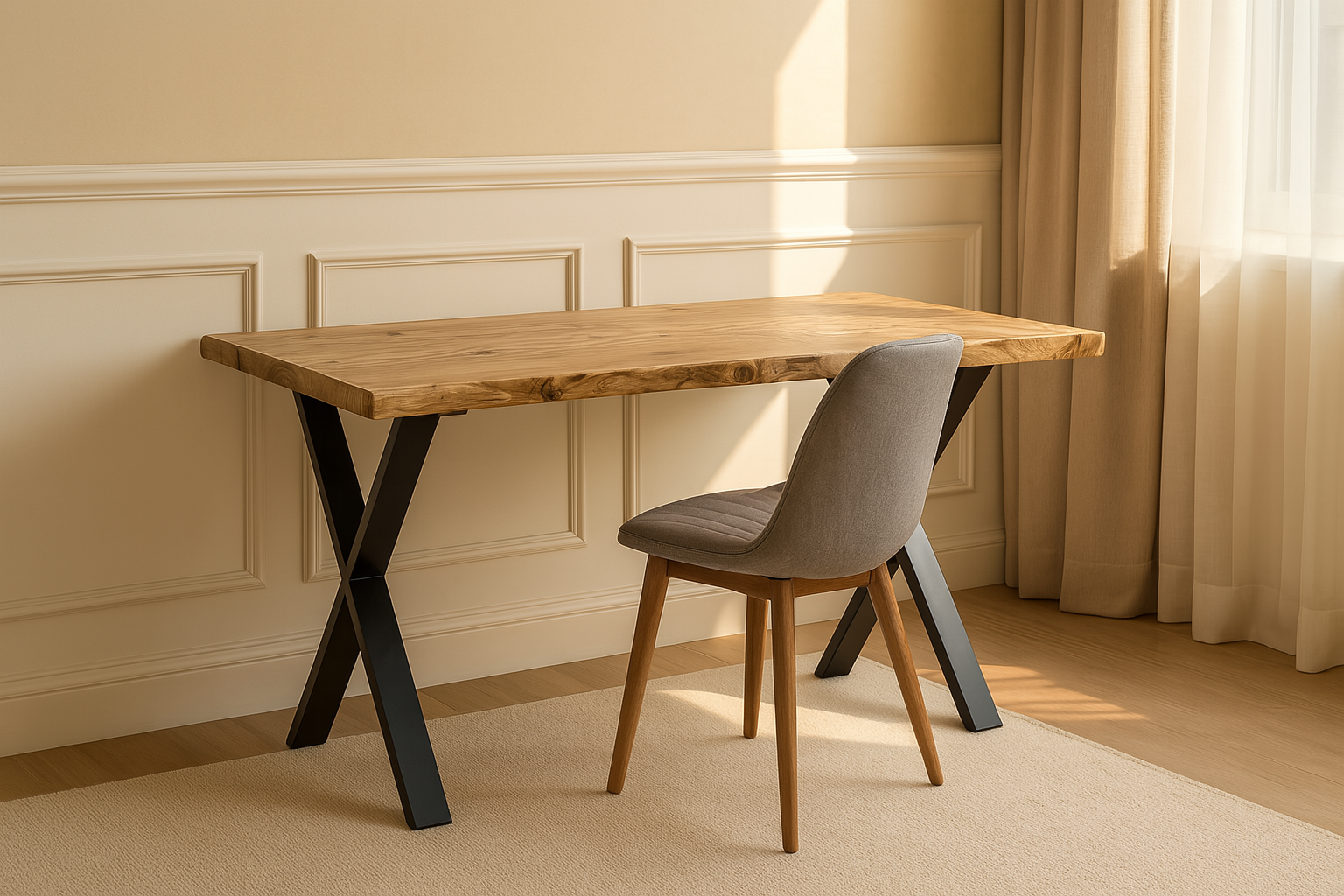 Live / Waney Edge Study Desk / Table With X Cross Metal Legs