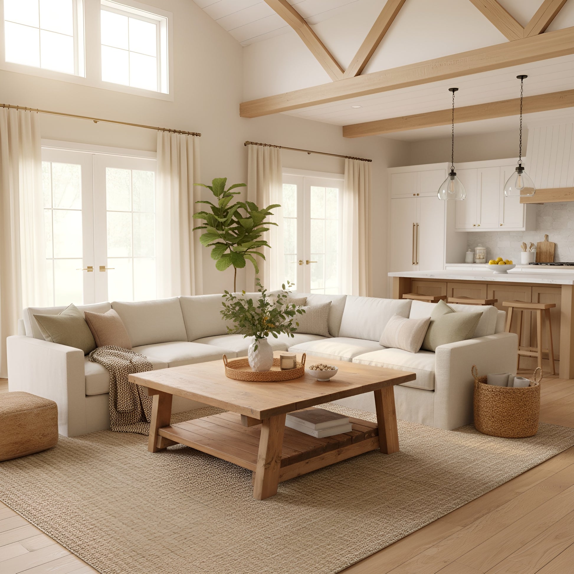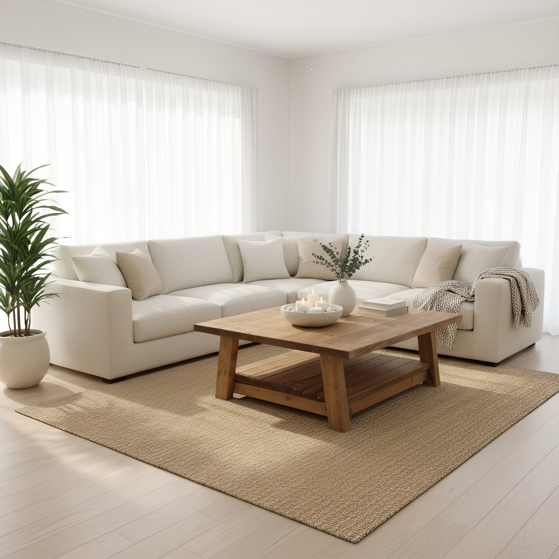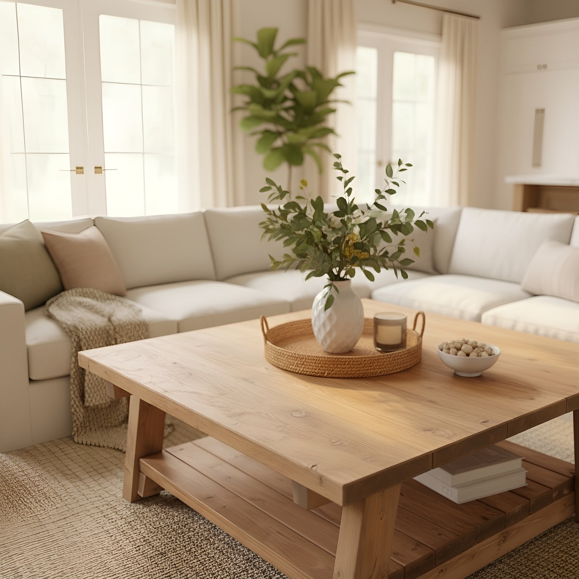 Large ARBA Rustic Solid Wood Coffee Table with Shelf
